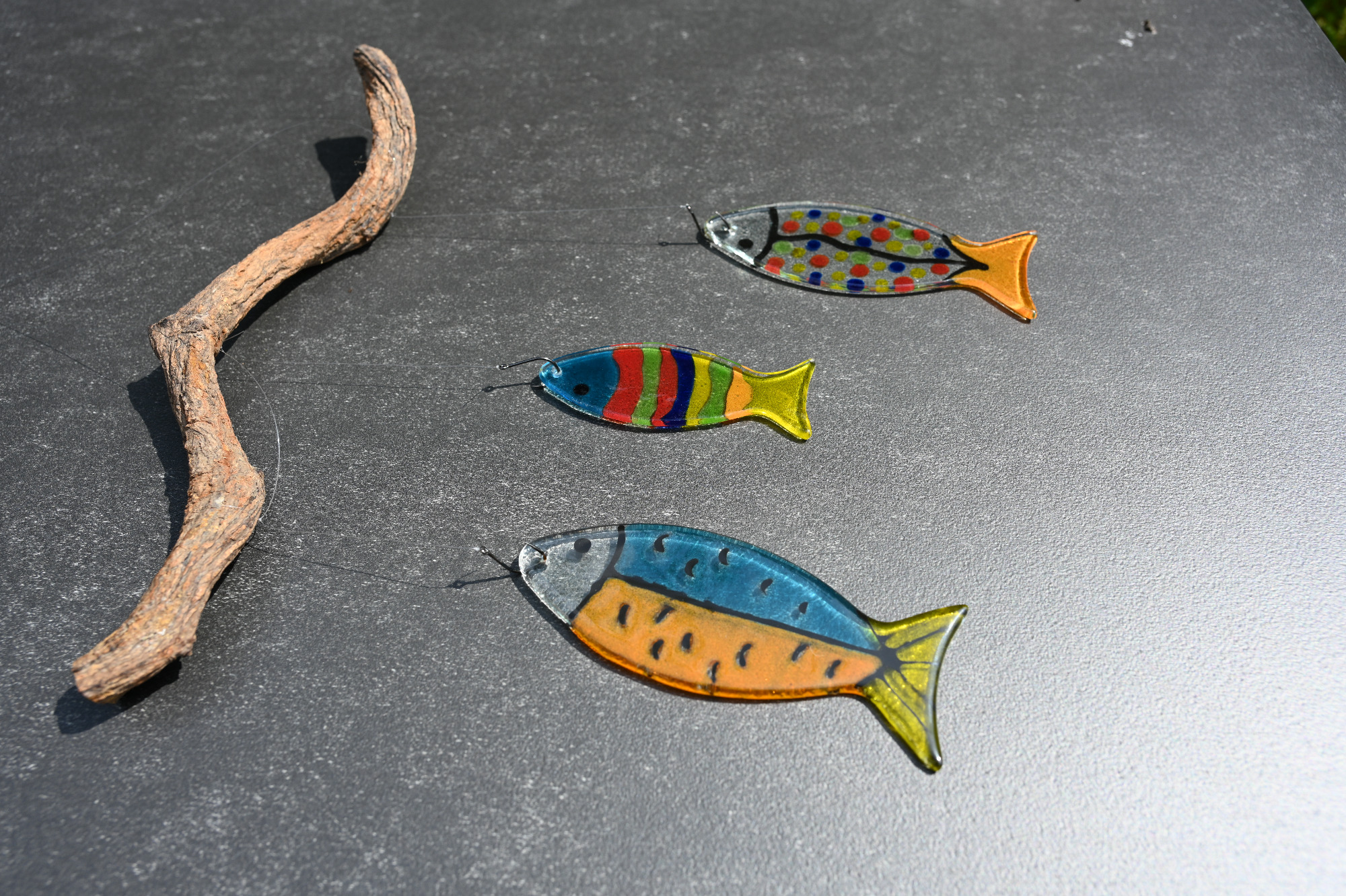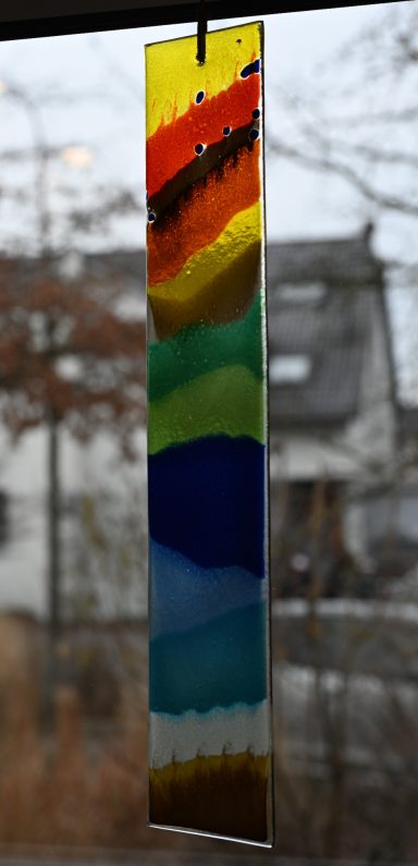 Viel braucht es nicht: eine Glasscheibe, ein bisschen Malmedium mit Glaspulver und Lust aufs Ausprobieren. Dein Motive entsteht unterwegs ganz automatisch.
