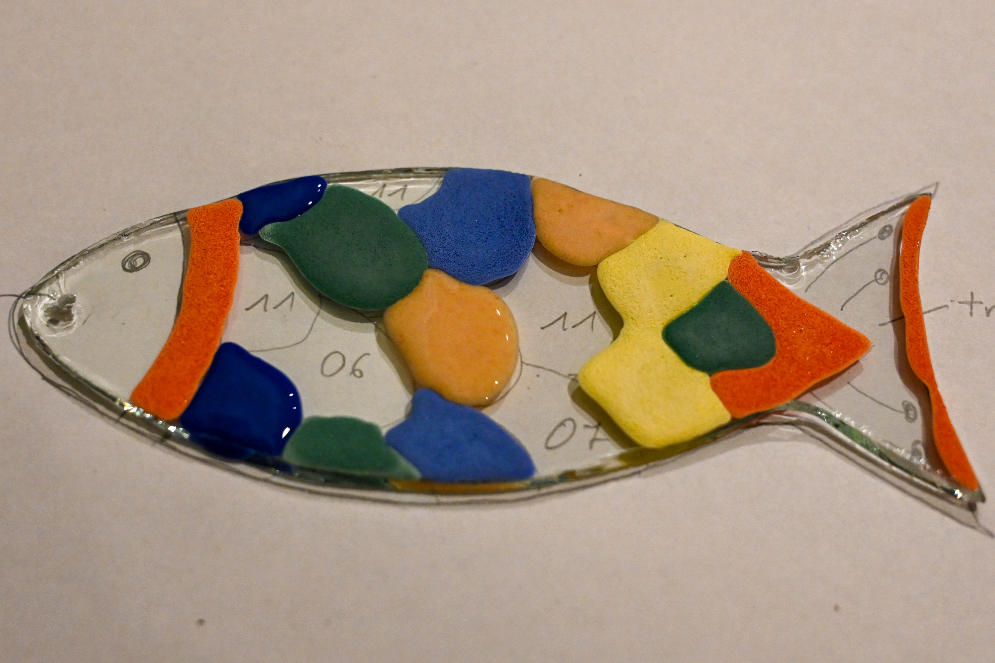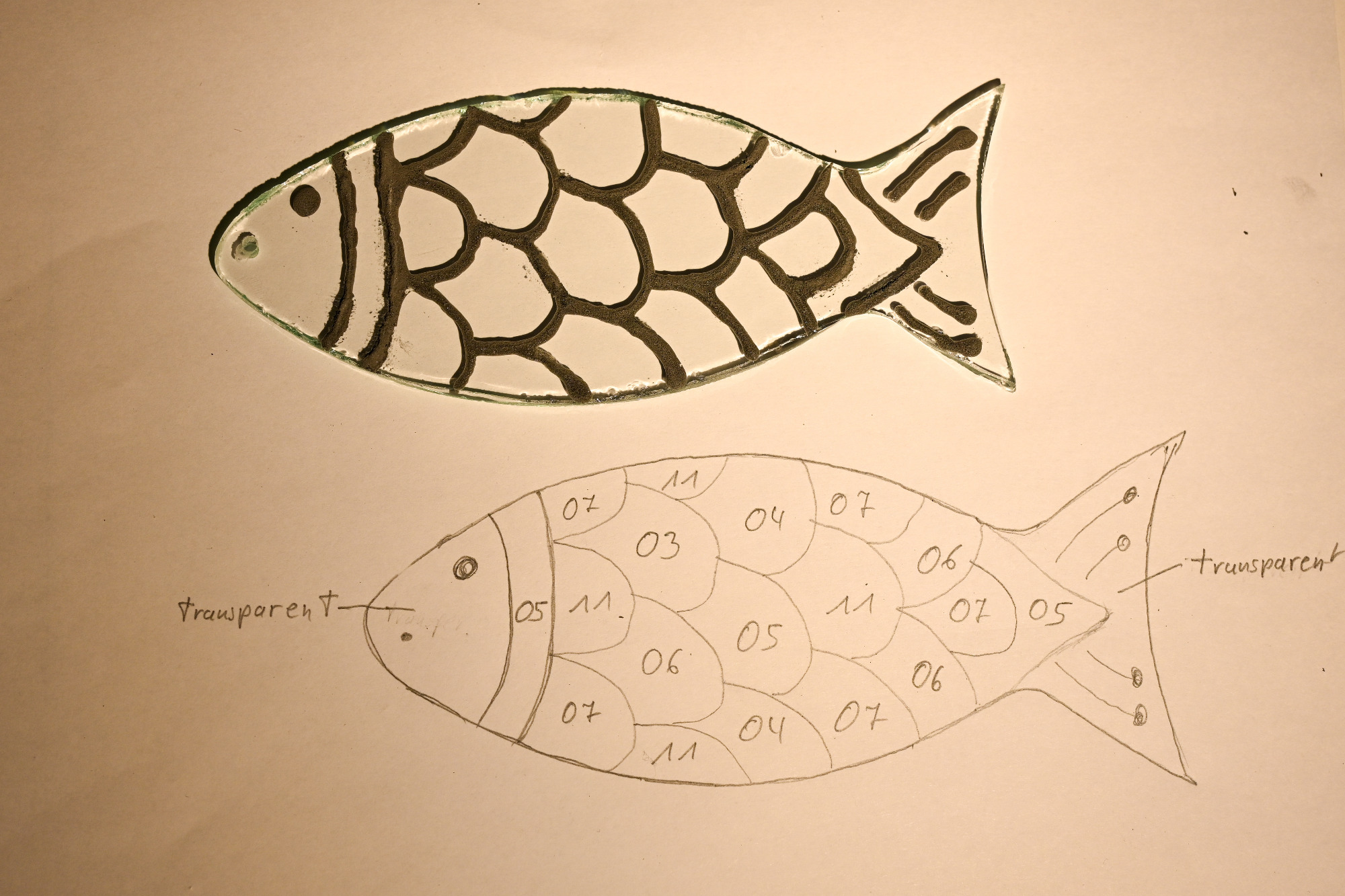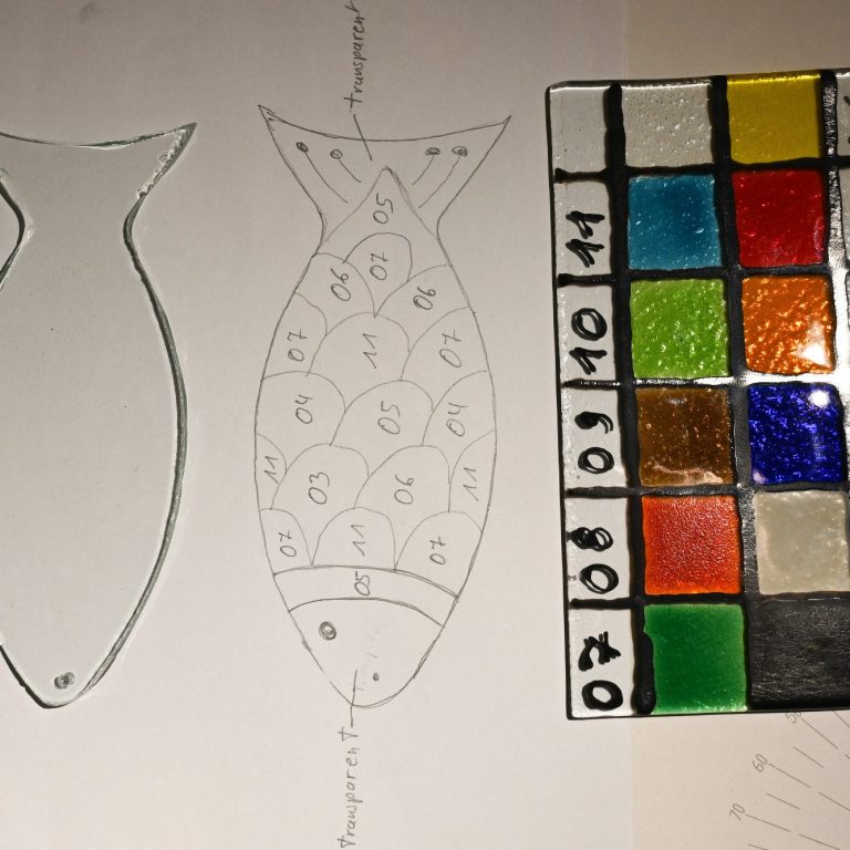 Gehörst du eher zu denen, die sich erst überlegen wollen, was genau entstehen soll? Perfekt – dann ist das hier dein Startpunkt. Das Schöne an Glas ist ja: es ist durchsichtig. Du kannst dein Glasstück einfach auf ein Blatt Papier legen und die Konturen mit einem Stift nachzeichnen. Zack – schon hast du die Form auf dem Papier und kannst dort in Ruhe deine Idee entwickeln.