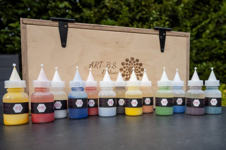 Kreativkiste mit Glasmalfarben.